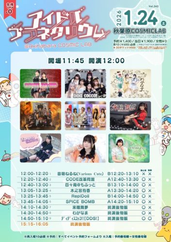 - 2026年1月24日(土) 12:00アイドルプラネタリウム Vol.243