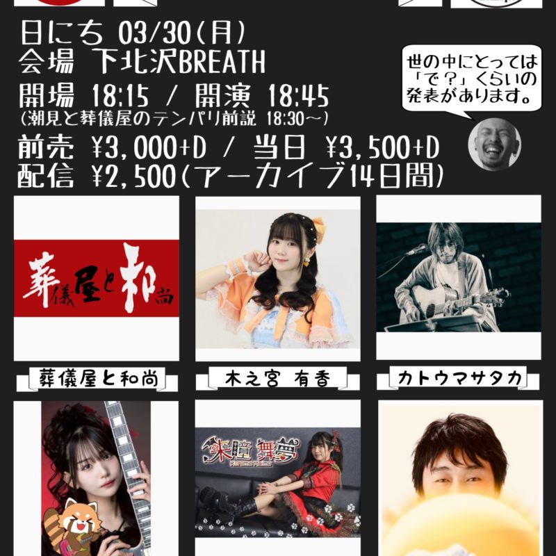 - 2026年3月30日(月) 開場 18:15 / 開演 18:45 / 前説 18:30〜