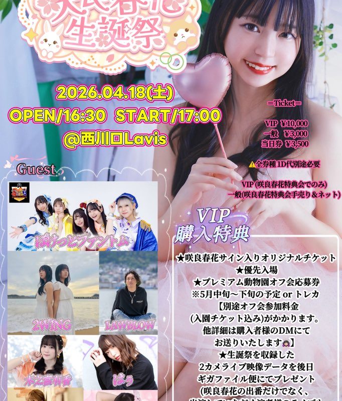 - VIP 10,000円 / 前売り 3,000円 / 当日 3,500円