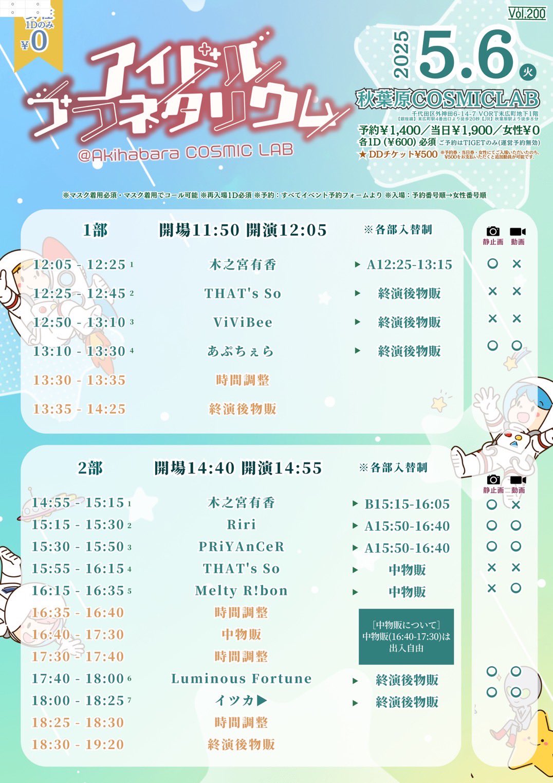 2025年5月6日(火) 1部 開場11:50 開演12:05 /2部 開場14:40 開演14:55