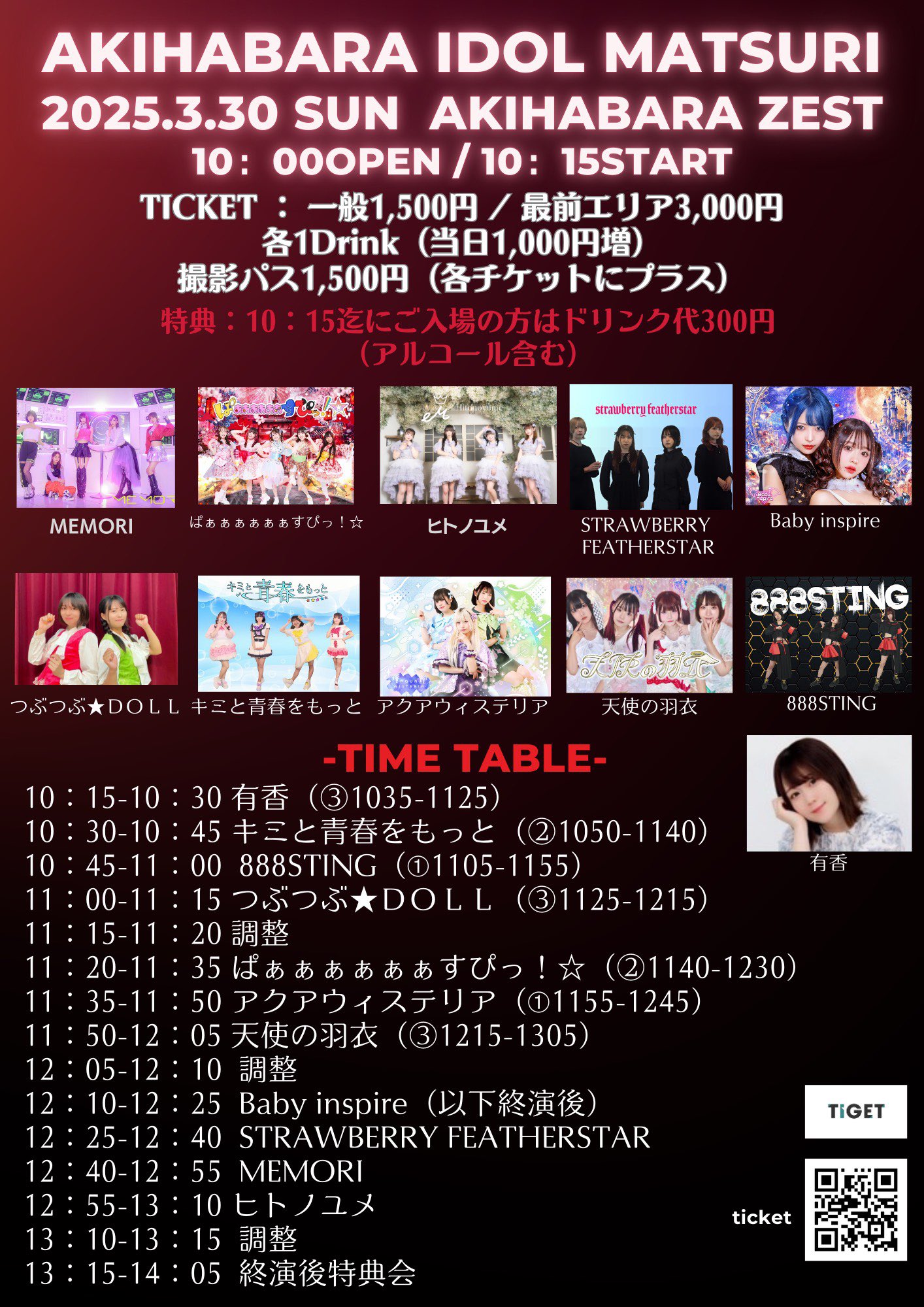 一般1,500円/最前エリア3,000円 (当日1,000円増) /撮影パス:1,500円(※当日1,000円増)